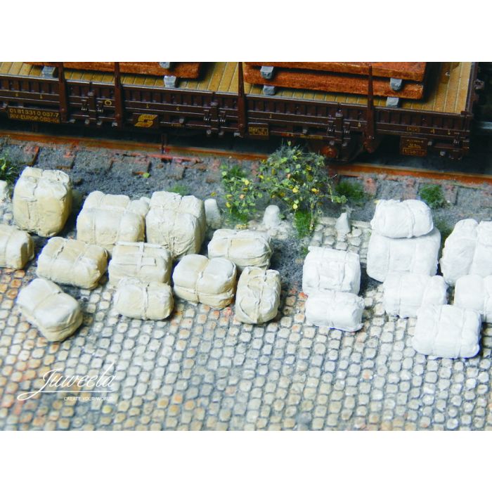Omschrijving / Juweela Grondstof balen - Wit en beige - 2x 20x - H0 / 1:87 (JW28329)
