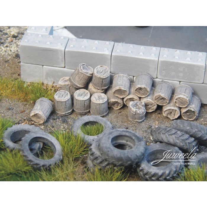 Omschrijving / Juweela Oude houtenvatten donker - 44x - H0 / 1:87 (JW28340)